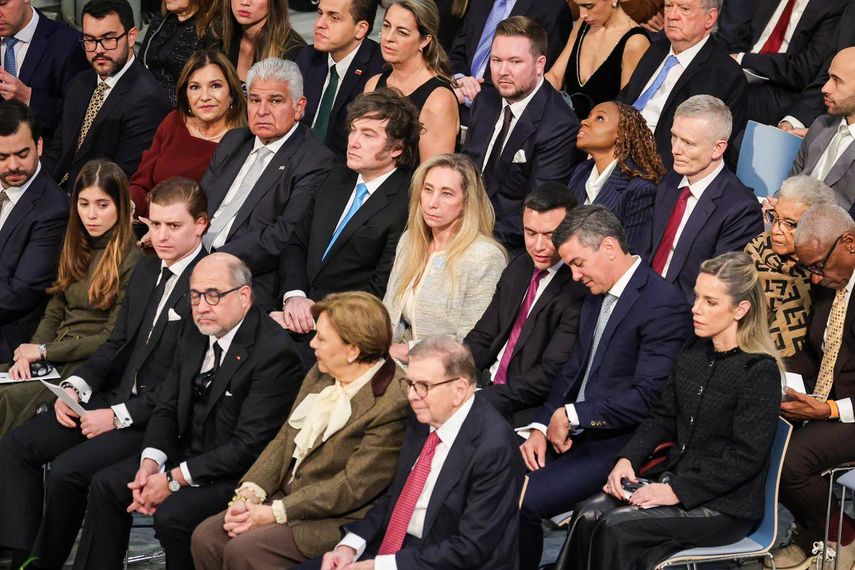 El mandatario estuvo acompañado de su esposa, Maricel de Mulino, y los presidentes de Argentina, Javier Milei, de Ecuador, Daniel Noboa, y de Paraguay, Santiago Peña.