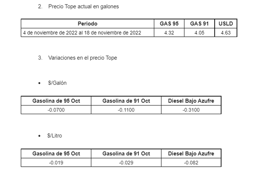 Estos precios regirán hasta las 5:59 de la mañana del próximo 18 de noviembre de 2022.