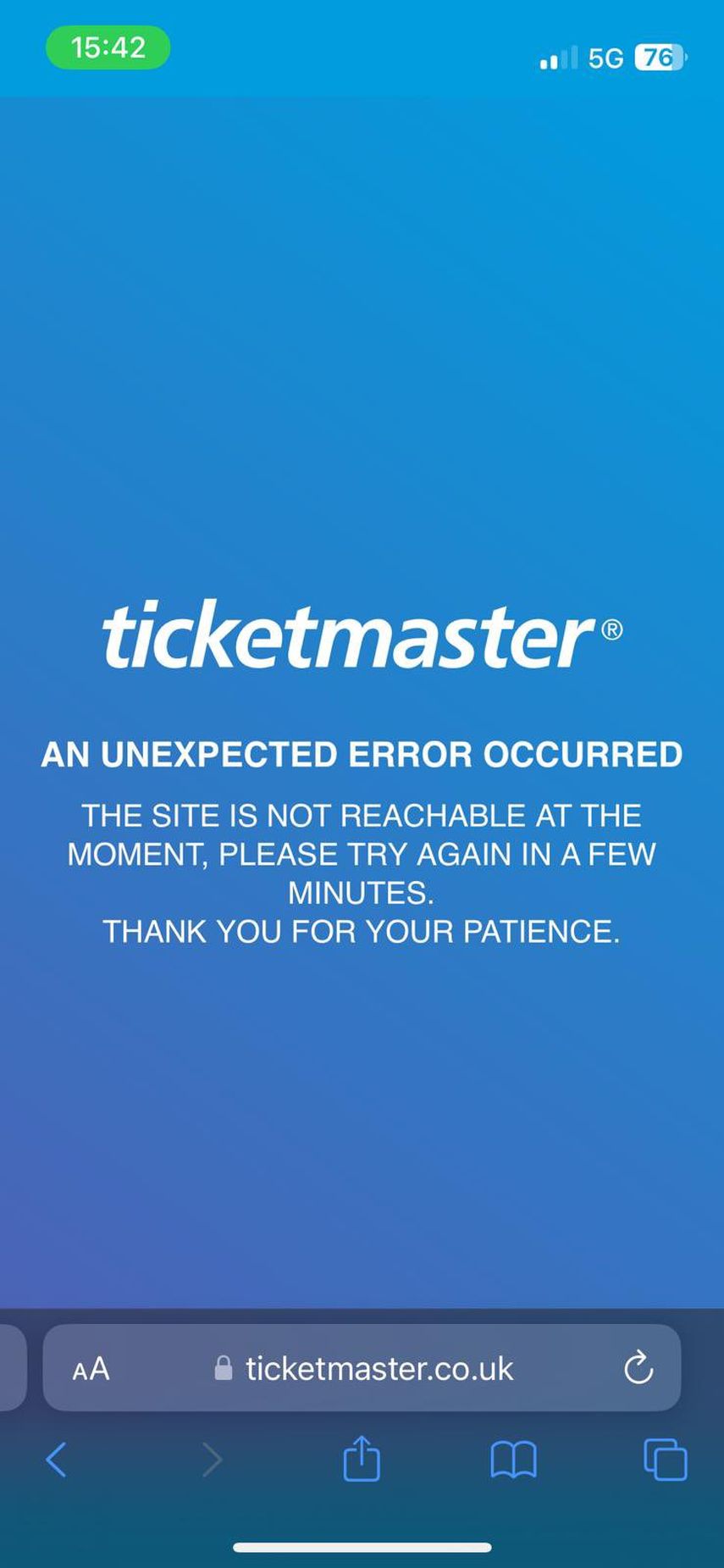 Algunos de los que intentaron acceder a las plataformas de venta de boletos autorizadas, entre las que estaban Ticketmaster y Gigs and Tours, recibieron mensajes de error mientras que muchos otros fueron informados de que tenían una larga fila por delante.