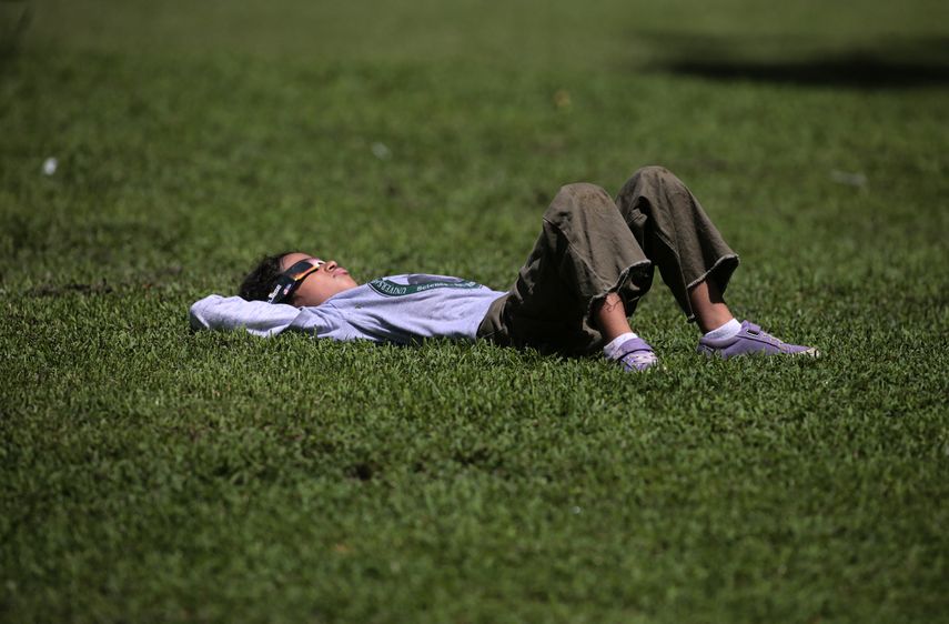 Protegido con gafas especiales, Jhoan Vinazco, un universitario de 25 años, vio por primera un eclipse de Sol. Fue "un momento bastante bonito (...) una cosa indescriptible, sin palabras", sostuvo.
