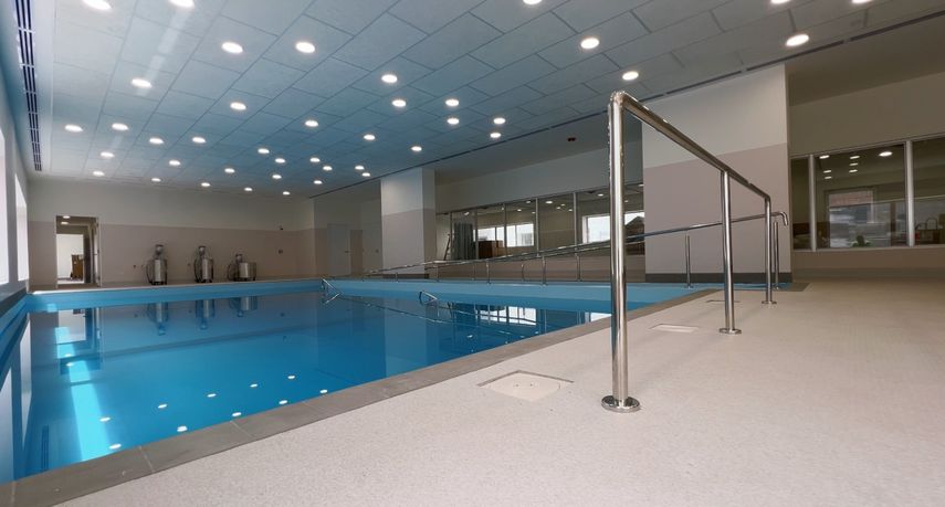 Además, la piscina tiene adecuaciones con acceso para sillas de ruedas especiales y está hecha con diferentes niveles de profundidad, para manejar a los pacientes de acuerdo a la altura y dependiendo de las patologías.