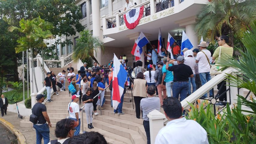 Miembros de la sociedad civil y otros grupos reunidos en los predios de la Corte Suprema de Justicia este martes 14 de noviembre, explicaron las razones por las que consideran que el contrato minero es inconstitucional.