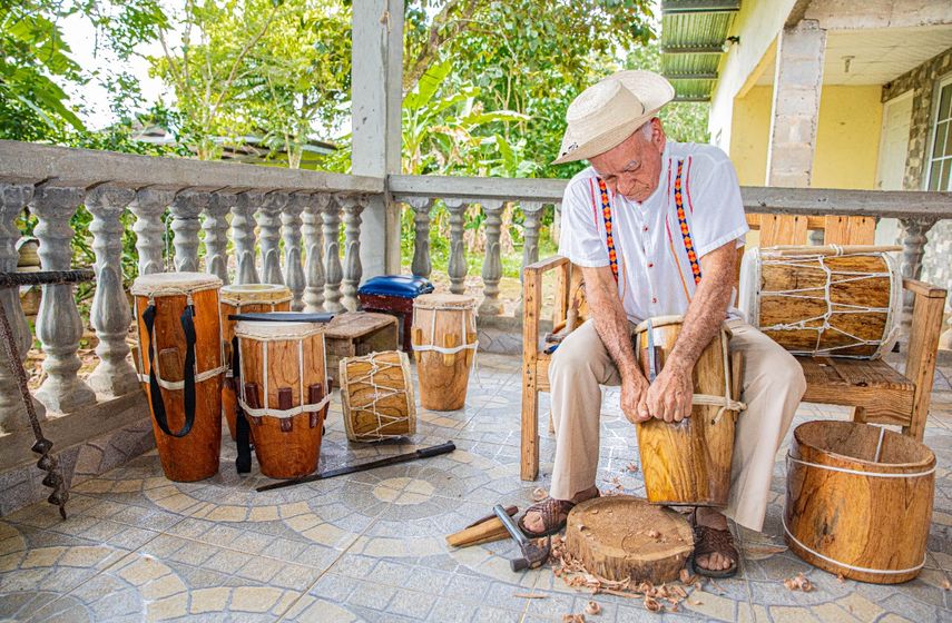 Eligio Tejedor nació con un talento innato de transformar la madera en instrumentos de percusión. Se la ha pasado los últimos 50 años fabricando de forma artesanal el tambor, la caja y el repicador.