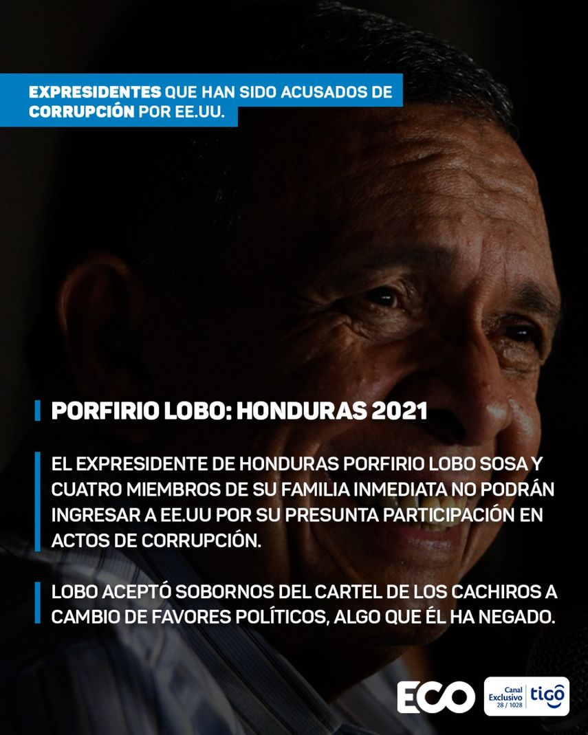 El expresidente de Honduras Porfirio Lobo Sosa y cuatro miembros de su familia inmediata no podrán ingresar a EE.UU por su presunta participación en actos de corrupción.