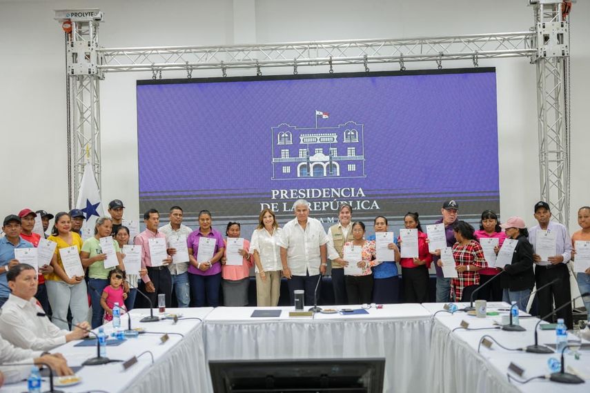 La entrega, que contó con la presencia de la primera dama de la República, Maricel Cohen de Mulino, y el administrador de la Autoridad Nacional de Tierras (Anati), Andrés Pagés, beneficia a personas de los distritos de Aguadulce, Antón, La Pintada, Natá, Olá y Penonomé.