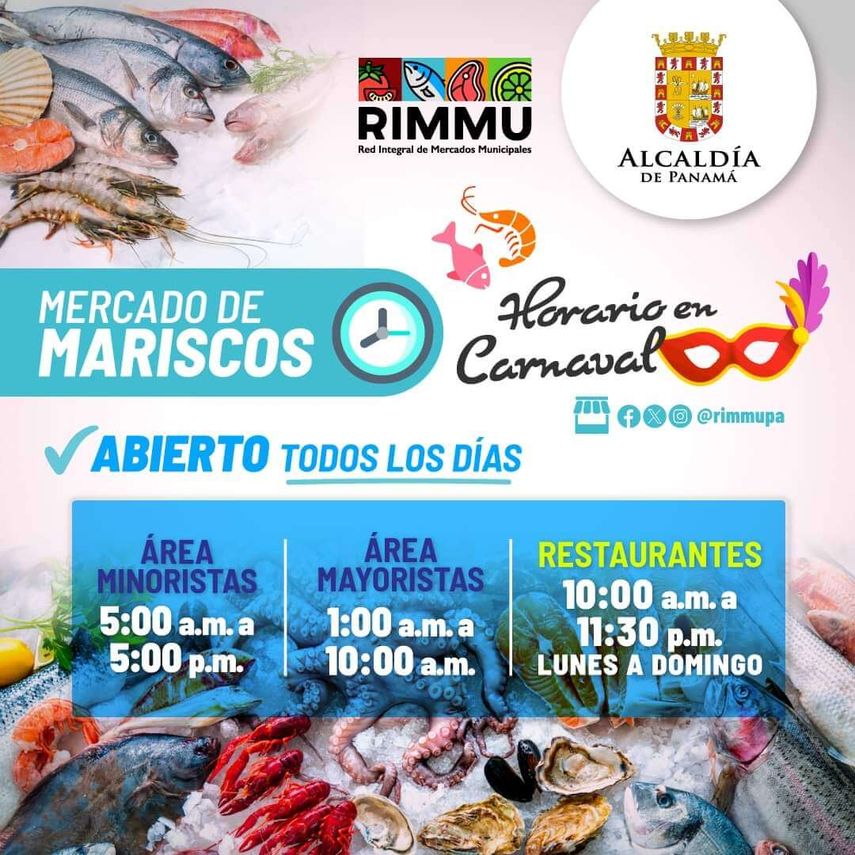 El Municipio de Panamá hace del conocimiento de toda la población de la ciudad capital, que durante estos cuatro días del Carnaval, los Mercados Municipales seguirán atendiendo a sus clientes, aunque algunos en horarios especiales.