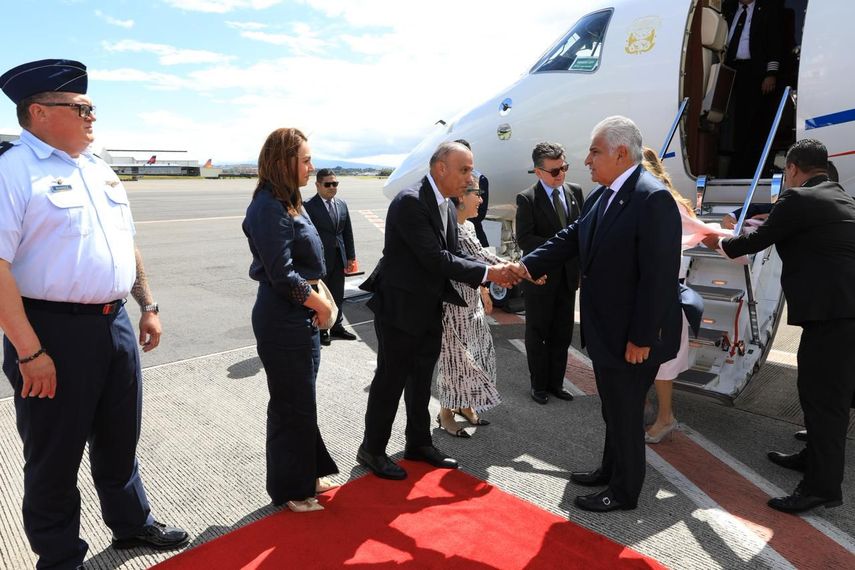 El presidente de Panamá, José Raúl Mulino, llegó este viernes a Costa Rica junto a la primera dama, Maricel Cohen de Mulino, y un equipo de ministros de Estado para cumplir con una visita oficial de un día que lo reunirá con el mandatario costarricense Rodrigo Chaves Robles.