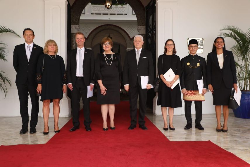 El presidente de la República, José Raúl Mulino, recibió las cartas credenciales de los embajadores de Eslovenia, Dinamarca, Suiza, Polonia, Indonesia, Reino Unido de Gran Bretaña e Irlanda del Norte, y Barbados, en una ceremonia oficial realizada en el Salón Amarillo del Palacio de Las Garzas.