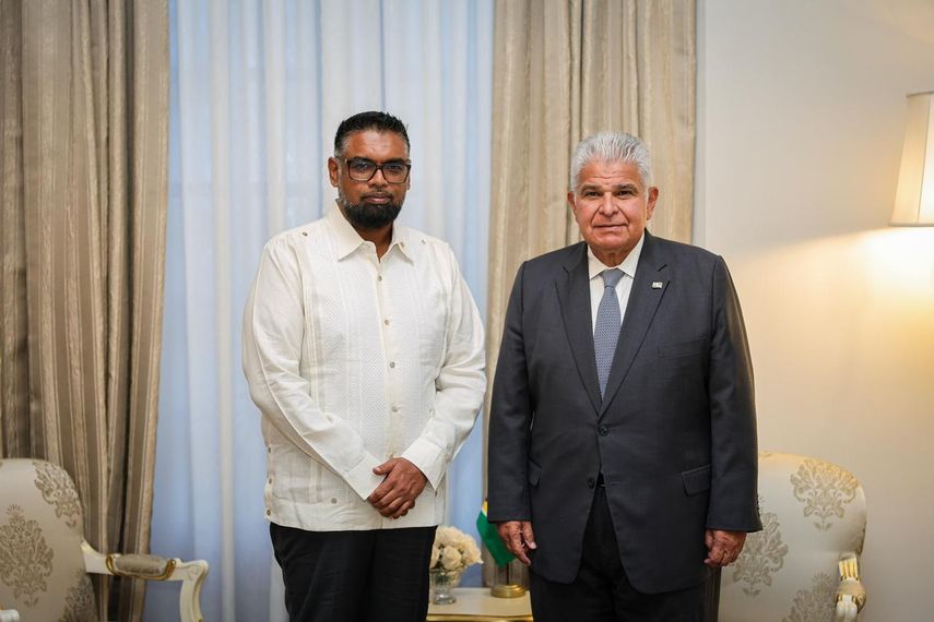 El presidente de la República, José Raúl Mulino, recibió este martes en visita de cortesía en el Palacio de las Garzas a su homólogo de la República Cooperativa de Guyana, Mohamed Irfaan Ali. Durante el encuentro, ambos mandatarios acordaron estrechar los vínculos bilaterales en áreas como cooperación, inversión y seguridad.