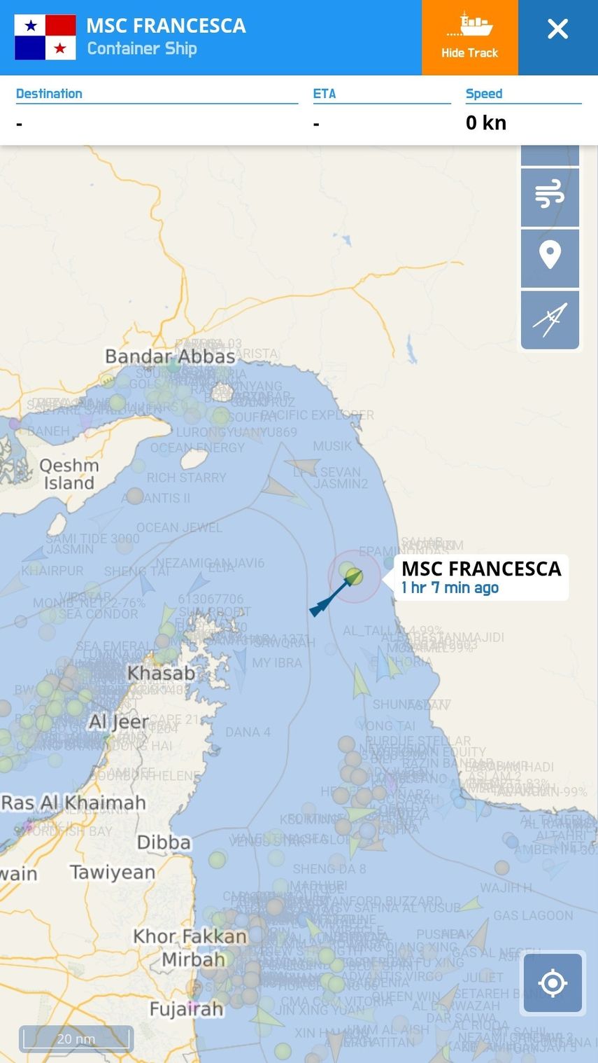 En cuanto al portacontenedores 'MSC Francesca', la Autoridad Marítima panameña precisó que, cuando la nave se disponía a transitar por el Estrecho de Ormuz, "fue interceptada por el Cuerpo de la Guardia Revolucionaria Islámica, que solicitó su fondeo cerca de la costa iraní".
