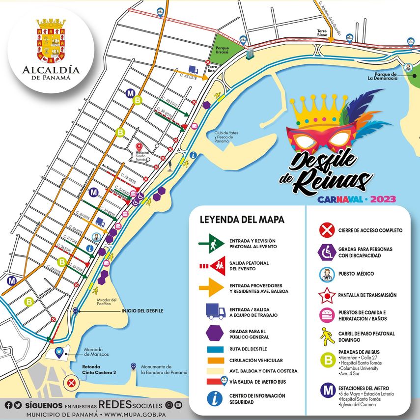Concluido el evento, se abrirán 5 puntos para el desalojo que estarán ubicados en calles 28, 32, 33 y 39 Este, además de una salida a la altura del Mercado de Mariscos.