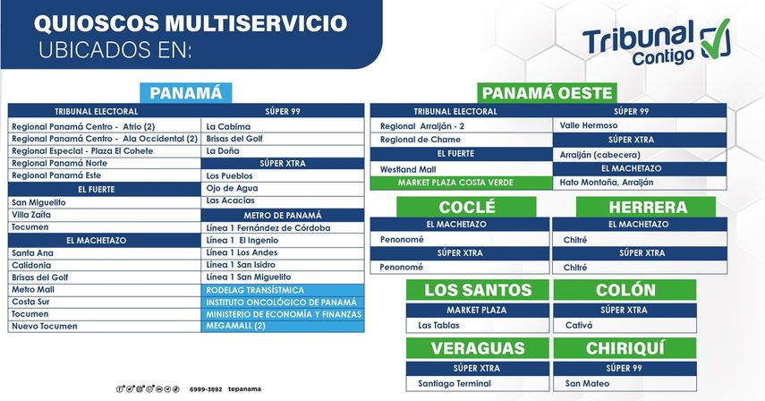 De enero a junio de 2022, unos 11,609 usuarios utilizaron los quioscos multiservicio para distintos trámites. De estos, 2,967 corresponden a la Dirección Nacional de Organización Electoral; 1,363, de Cedulación y 7,279 son de Registro Civil, según el Informe Semestral de Gestión 2022 del Tribunal Electoral.