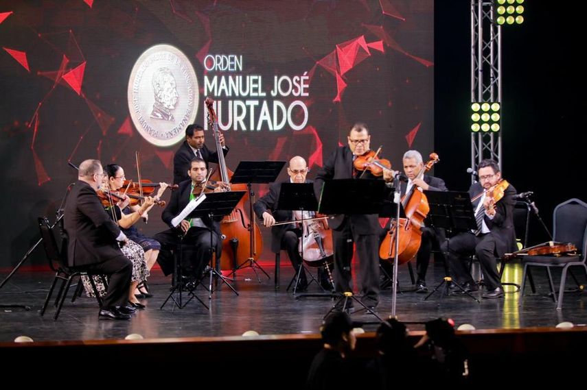 La directora de este centro educativo, María Eugenia Alvarado Camargo, recibió la Orden Manuel José Hurtado de manos del vicepresidente Carrizo Jaén.