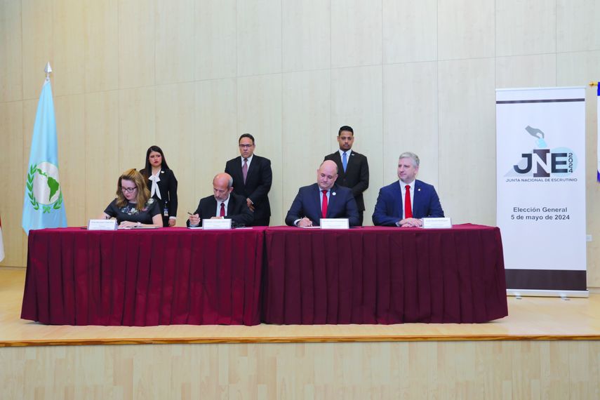 El magistrado Juncá Wendehake, en representación del Pleno, firmó por el Tribunal Electoral; mientras que por la Junta Nacional de Escrutinio (JNE) suscribió su presidenta, Nivia Rossana Castrellón, y por parte del Parlatino, lo hizo su presidente, Rolando González Patricio.